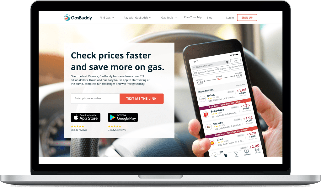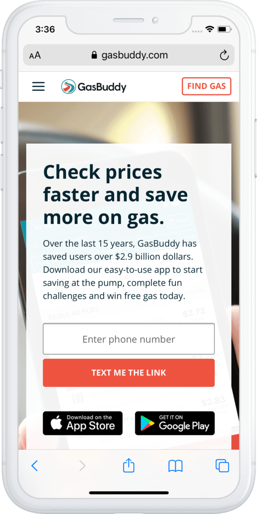 GasBuddy had recently been experimenting with testing the use of lifestyle images. For this download app page variant we chose a similar design to the latest Pay with GasBuddy landing page, as that test had performed well.